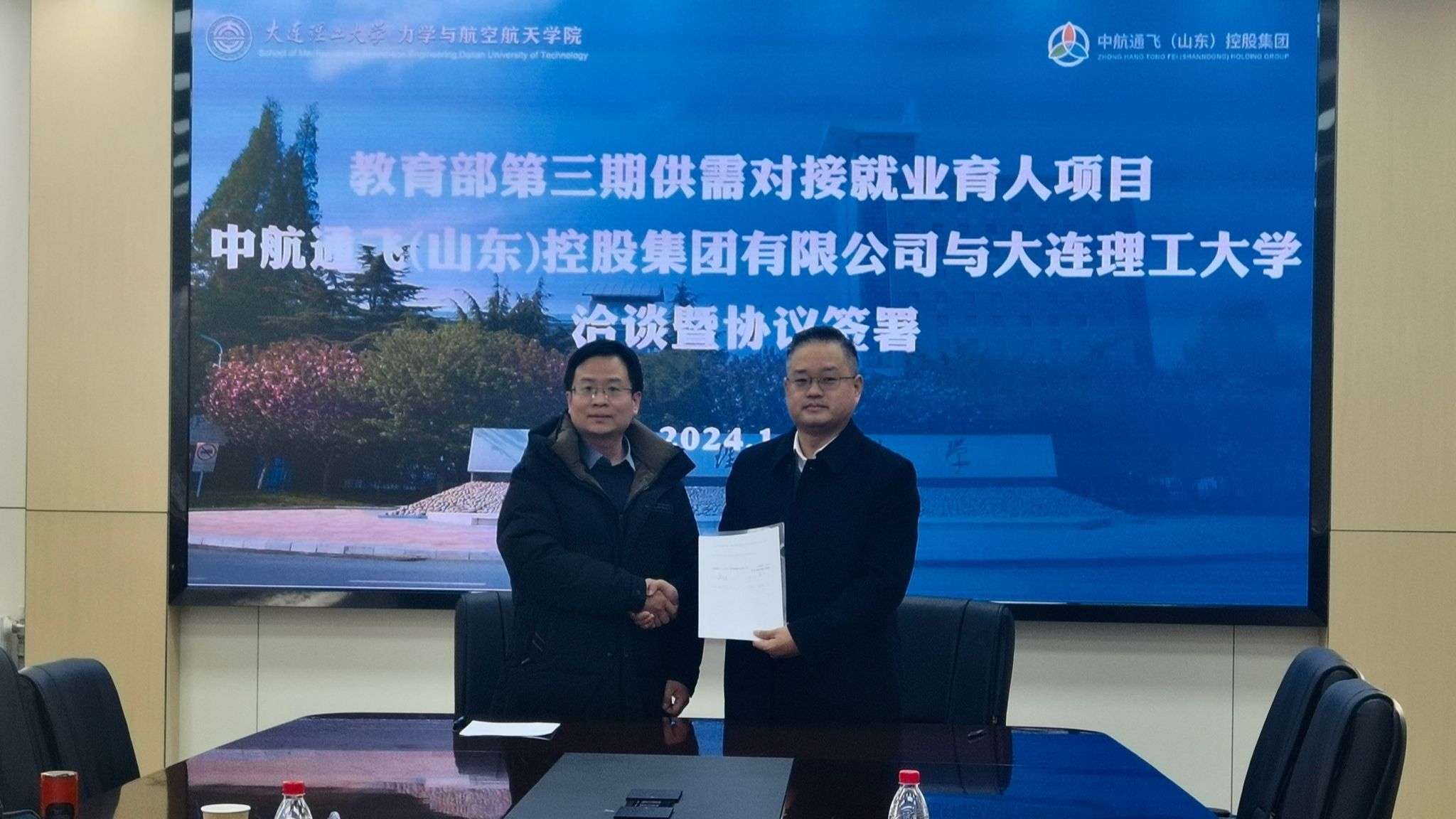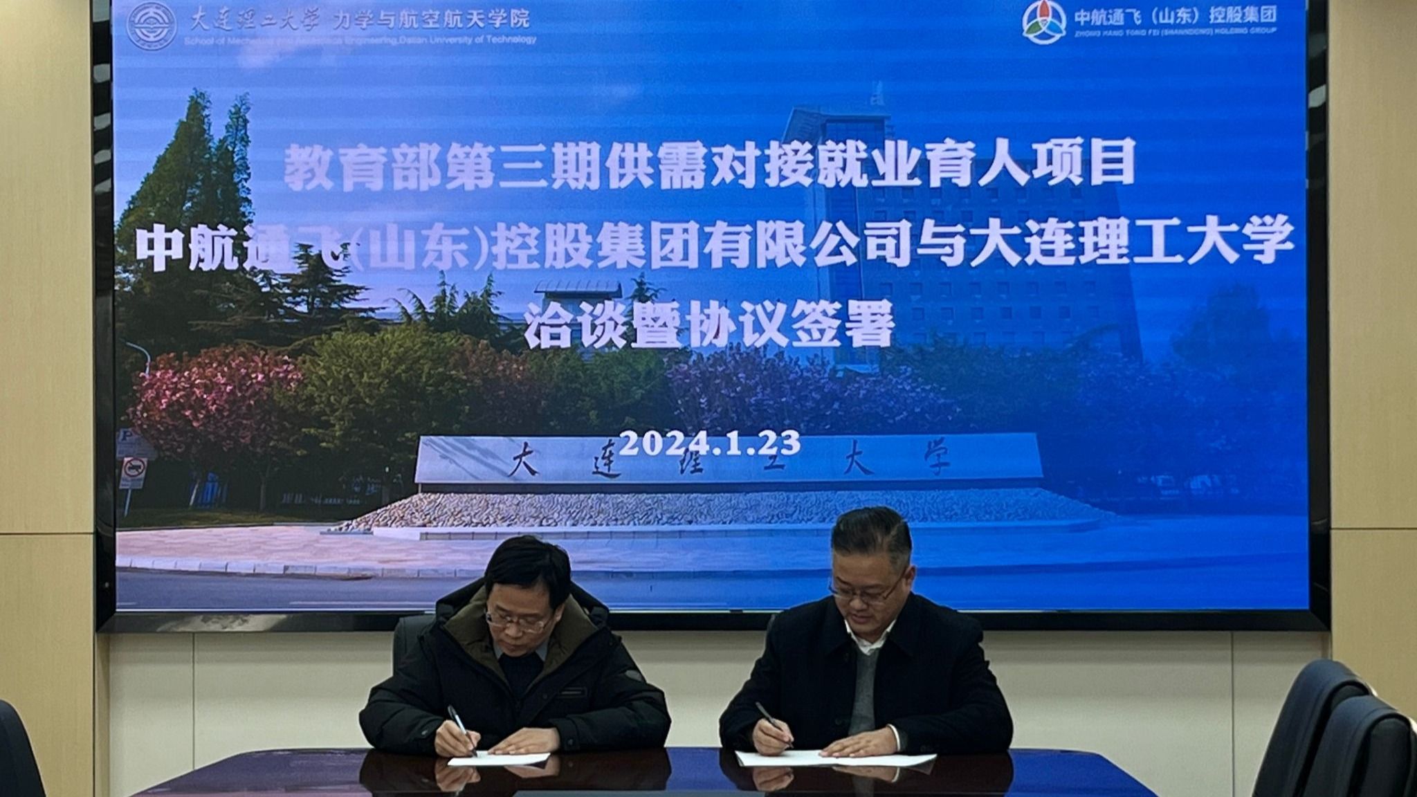 1月23日,公司与中航通飞(山东)控股集团有限公司达成就业实习基地合作意向,顺利签约。公司书记夏广庆教授,航空航天系主任、经理助理吕军教授及2024届毕业班辅导员代表公司出席。