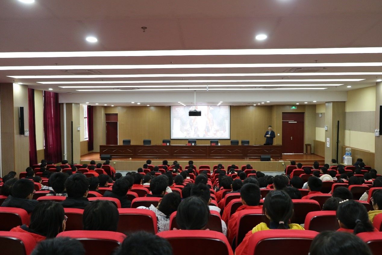 签约仪式后,阎军教授以“大国重器创新设计中的关键力学问题” 为题,面向霍山中学领军班、实验班240余名员工开展 “大工讲堂”。从新时代的大国重器的地位导入,指出力学是工程科学的基础,围绕“力学是什么、力学做什么、力学怎么做”,引导员工要打牢基础,也寄语员工“山海相连,千里情牵,金榜题名,圆梦大工”。