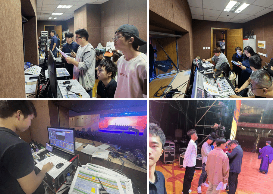 在场上精美绝伦的演出背后,是所有场务同学在台后默默无闻的付出,是引导组、催场组井然有序的指引,是音视频组、投影组、幕布乐池组精确无误的配合,是麦克组、道具组虽然忙碌但却值得 信任的可靠……同时,在建校75周年文艺晚会当天及过后一周,每位场务同学都有至少一门至多三门的期末考试,但是志愿者们顶着考试压力克服困难,踊跃奉献,大家挤出吃饭、赶路的时间抓紧复习,仍然在工作时间专心工作。在正式晚会前的节目一审、二审、三审、舞台灯光合成、第一次彩排、第二次彩排,共计6天坚守在自己的岗位上,每天至少6小时,甚至于在舞台灯光合成时从下午一点坚守到凌晨五点。在当天晚会现场,出现突发的道具故障,但场务志愿者们没有乱了阵脚,而是挺膺担当,在后台狂奔,在对讲中沟通,当机立断,确保建校75周年文艺晚会顺利进行。