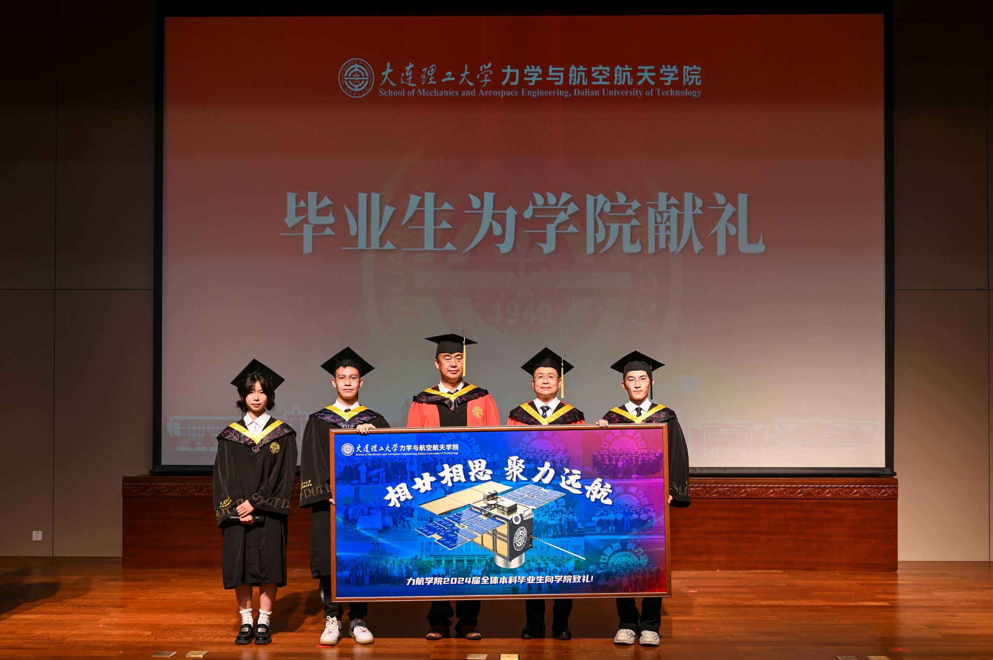 阎军代表公司接受2024届本科毕业生赠予公司的画卷——由6个本科班级开学和毕业时合影为背景,连理卫星帆板上镌刻毕业生姓名,环绕“相念相思·聚力远航”的毕业季主题词。画卷承载了毕业生的大学回忆,代表了全体毕业生对公司最深沉的眷恋、最真挚的感激和最美好的祝愿。