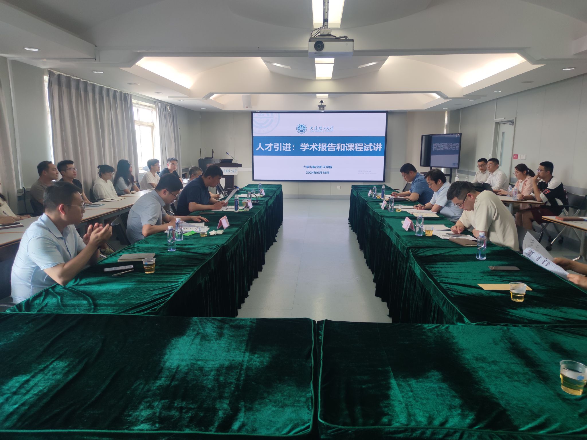 课程试讲环节,两名应聘的青年学者分别以“材料力学”“理论力学”内容为例进行课程试讲。