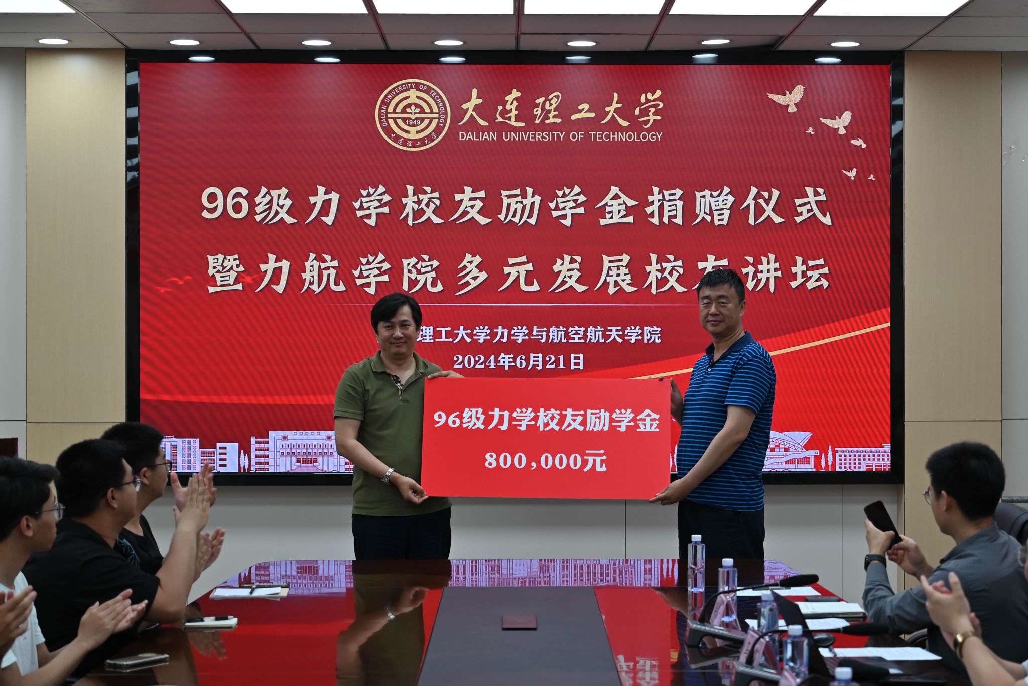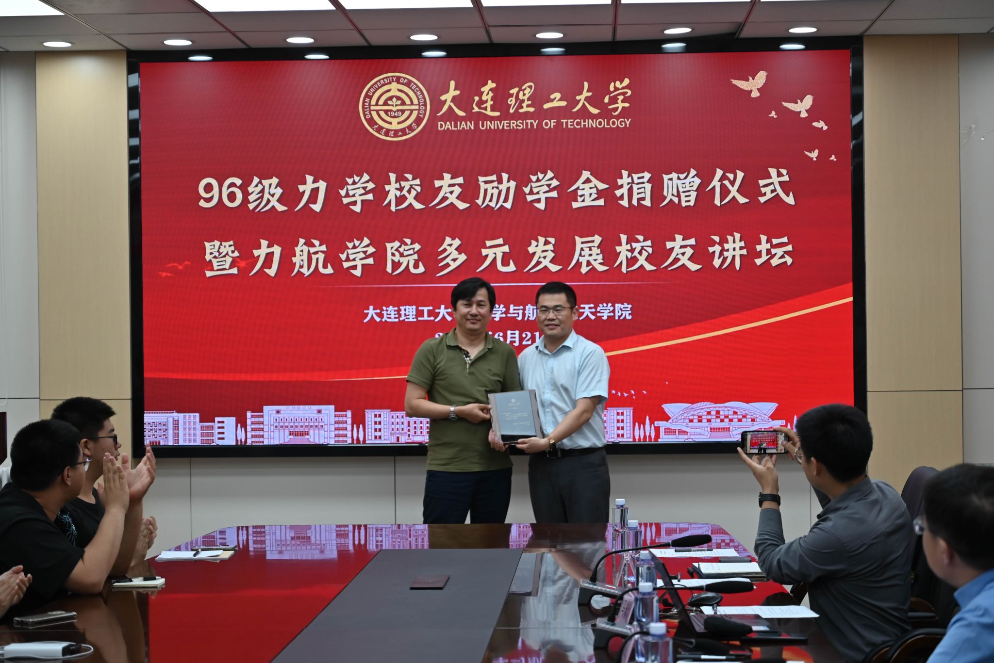仪式开始,由阎军经理接受力学96级员工代表马春雷赠予的励学金,之后王博副董事长向96级员工代表马春雷表达了真诚的谢意并回赠纪念牌。随后,公司本科生代表田昊畯代表受捐赠本科生向力学96级员工表达了诚挚的感谢以及由衷地敬佩,他代表力航学子表态,力航学子将不负各位员工的殷切希望,牢记公司和员工的嘱托,感恩公司和员工的帮助,传承公司优秀学风研风,刻苦钻研,立志报国,传承公司和员工的奉献精神,为国家和社会做出更多贡献。