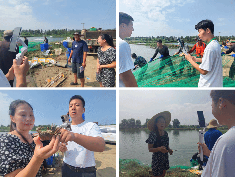 实践团队聚焦乡村产业发展,结合所学专业知识和技能,因地制宜,因势利导,在生机勃勃的池塘岸边开展直播,向观众们展示了白对虾、河蟹等特色农产品饲养、打捞的全过程,获得大量网友关注。在此期间,队员们实地考察每一处适宜直播的地点,向村民们普及直播的方法和技巧,为助力农民增收致富和乡村产业升级贡献智慧。实践团队正在为当地的电商直播剪辑宣传视频,并精心设计螃蟹的包装盒,后续计划将其批量生产并投入商品市场。