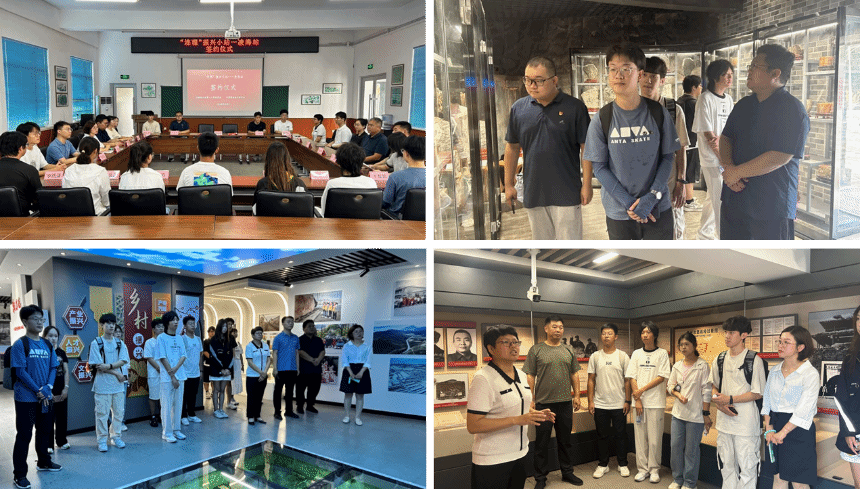 8月3日,实践团跟随校团委前往凌海市参加“连理小站”签约仪式。在牤牛屯村,实践队成员和团市委领导就“老员工如何积极投身乡村振兴”和“科技创新为乡村振兴赋能”等话题进行了深入的座谈交流,双方共话乡村振兴,厚植爱农情怀,练就兴农本领。交流结束后,实践队在政府人员的带领下参访当地乡村振兴数字馆,深入了解牤牛屯村新农村建设发展历程和乡村振兴成果;随后实践队探访虎溪村,欣赏当地陶印艺术,体验民俗风情。最后,团队成员还前往凌海市展望生物科技有限公司进入生产车间观摩,围绕校企合作促进科技兴农等话题深入沟通,对科技兴农、产业振农有了更加全面深入的认知与规划。