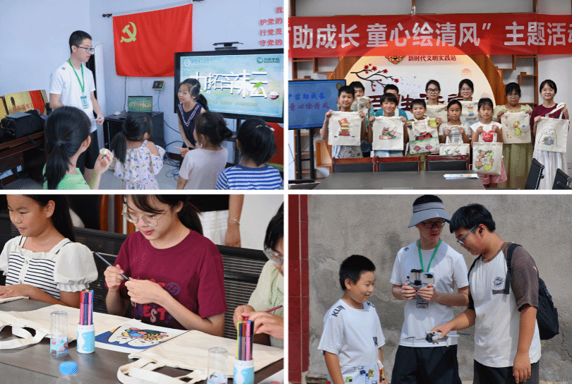 在大刘坡村,实践队员们与小朋友们携手,结合村庄的实际情况,开展了丰富多彩的科普讲座和文娱活动。队员们发挥自身专业知识,将理论与实践结合,普及身边科学小常识,带领感兴趣的小朋友操控无人机,体验各种新奇事物,从而激发小朋友们的学习与探索热情;同时准备绘画和手工材料,与小朋友们共创艺术作品,助力推动当地的美育教学进程。实践团队倾心教学,营造乐学氛围,鼓励小朋友们认真读书学习,为乡村振兴注入文化活力。
