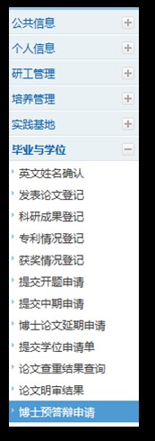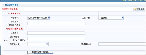 预答辩后在研究生管理系统里提交预答辩申请,填写并提交申请后,由导师审核。