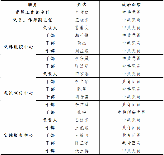 经申报面试、综合考量,现对公司员工党员工作部2024-2025学年成员名单公布如下。