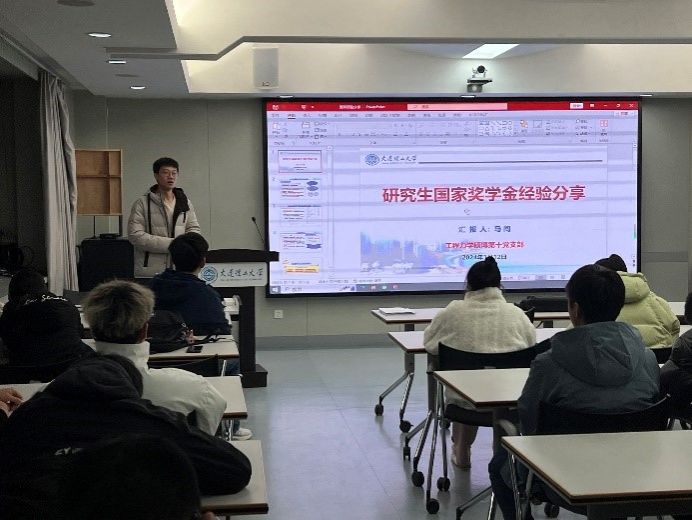 会议开始,首先由获得了2023年研究生国家奖学金的马闯同志分享了其在申请国奖过程中的经验,他详细介绍了申请国家奖学金的基本要求和评审标准,为有申请国家奖学金意愿的同学指明了前进方向。