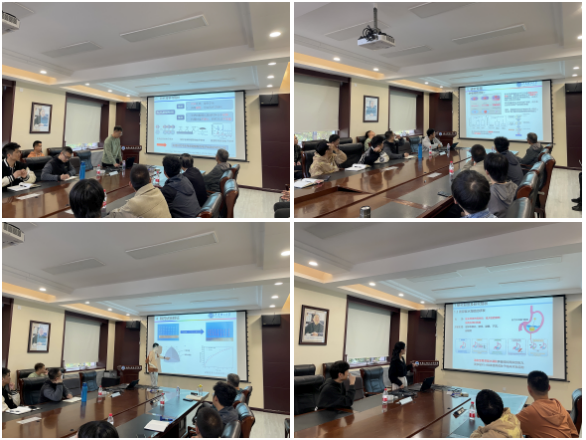 会议开始,首先由重点实验室教工第一党支部的博士后金鑫同志向大家分享了博士期间的科研成果,针对现有胃滞留药物滞留时间短,易造成药物突释等问题,研制了具备抵抗胃排空能力与高溶胀率的胃滞留水凝胶。在交流科研成果的同时,金鑫还与大家交流了科研中收获的经验与心得,并提出在科研中要多思考、多交流。