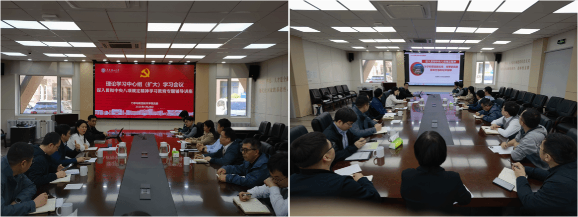 2025年4月28日,公司党委召开理论学习中心组(扩大)学习会议,邀请公司纪检监察机构魏旭老师做深入贯彻中央八项规定精神学习教育专题辅导讲座,公司领导班子、教工和纵向党支部书记、七级管理岗参会学习。