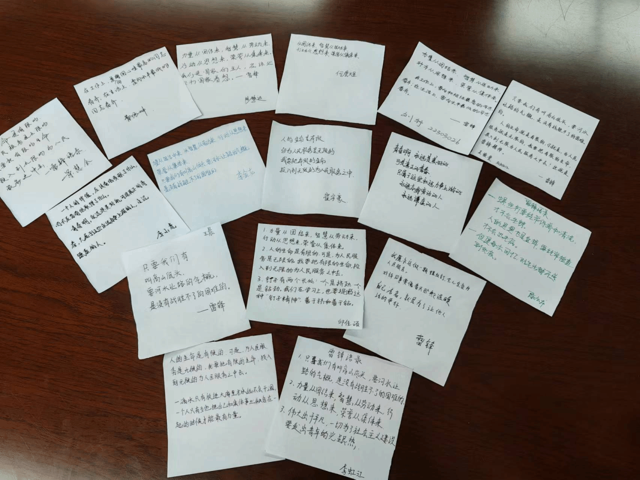 雷锋语录是雷锋精神在文字上的重要体现,在此环节,同学们将雷锋语录一字一句誊抄在纸上,他们深知,通过誊抄雷锋的语录,他们不仅仅是在记录雷锋的话语,更是在传递一种精神。他们希望通过自己的行动,将雷锋的爱与温暖传递给更多的人。