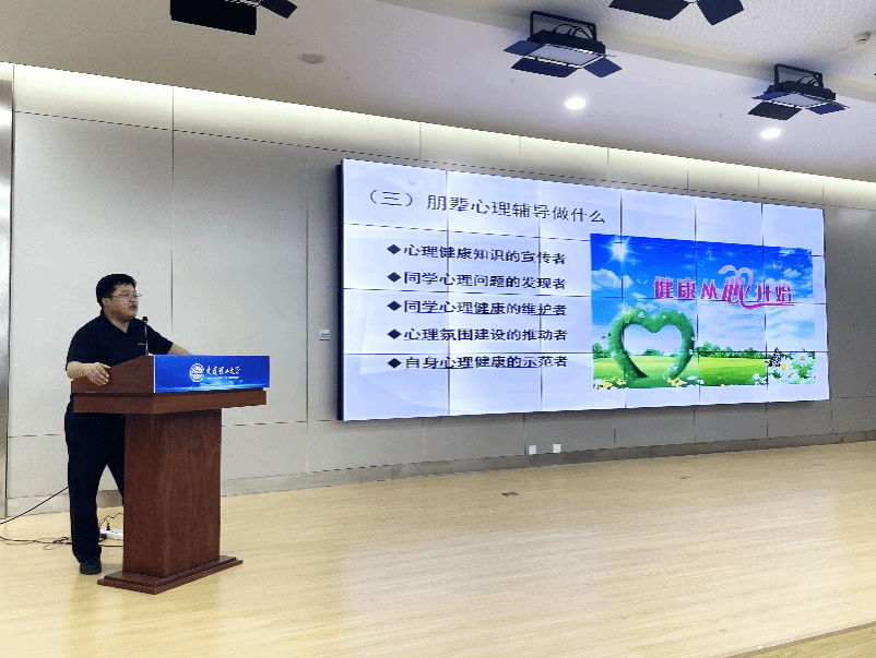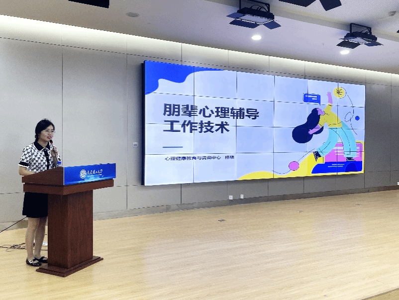 杨晓围绕朋辈心理辅导工作技术,着重讲解了情绪调节技术、一致性沟通技术、非暴力沟通技术和倾听技术,指出朋辈心理辅导要综合运用各项技术,才能更好地表达在意、理解和支持。