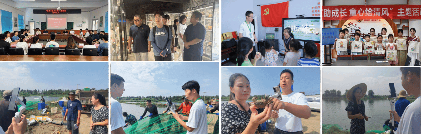 “力拓辛耘”实践团前往辽宁省凌海市、天津市宝坻区大白庄镇开展暑期社会实践活动。在凌海市参加“连理小站”签约仪式,参访当地乡村振兴数字馆和重点企业,了解牤牛屯村新农村建设发展历程和乡村振兴成果。在天津市大白庄镇,实践队走进田间地头,传承乡土文化,协助整理村史,设计原创乡村标志。聚焦乡村产业发展,结合所学专业知识和技能,因地制宜,因势利导,在生机勃勃的池塘岸边开展直播,向观众们展示了白对虾、河蟹等特色农产品饲养、打捞的全过程,并精心设计螃蟹的包装盒,获得大量网友关注。