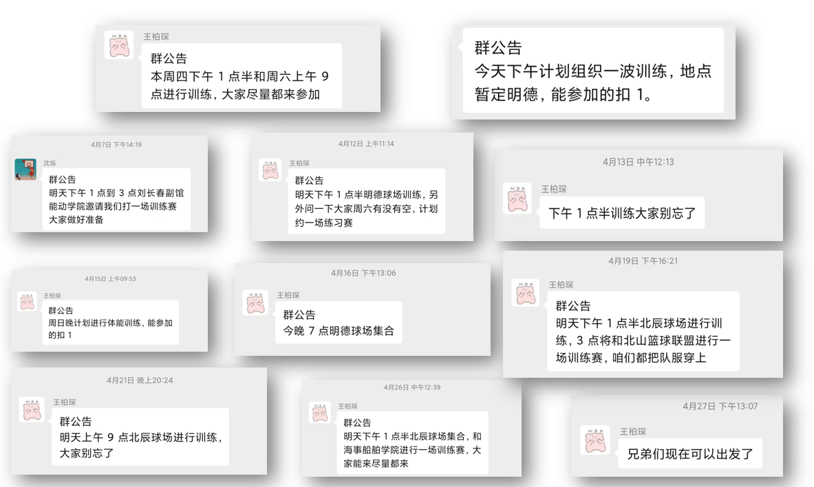 研究生篮球队的故事,开始于春的伊始,那一天阳光正好,天空正蓝,在学部组织的选拔赛中,12名同学脱颖而出,与之后加入的国峰楠老师、孙墨曈老师、陈晓东老师满编成队。