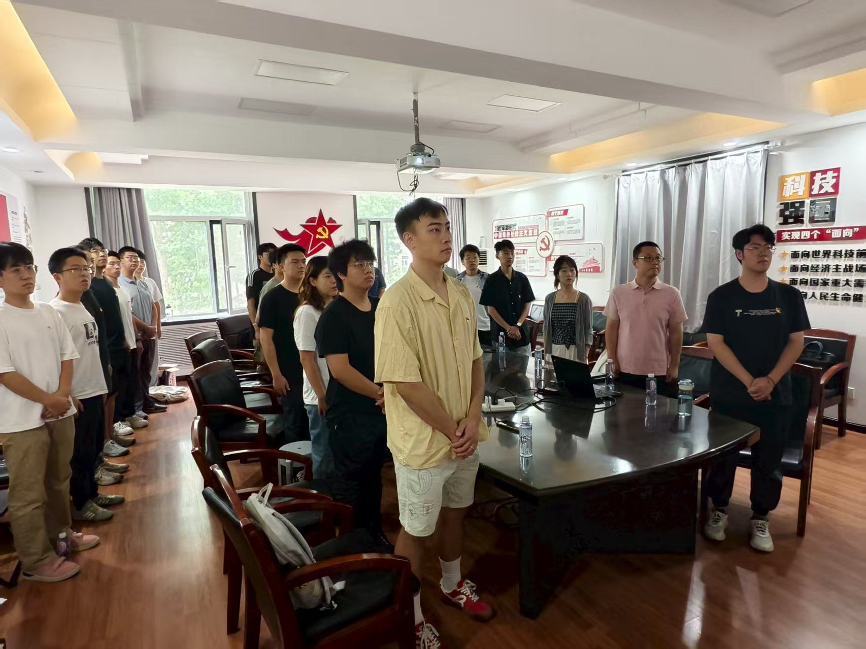 国歌奏响,全体党支部成员自发肃立,齐声高唱国歌,用洪亮而真挚的歌声表达对祖国的深切热爱。在整个观看过程中,同学们全神贯注,情绪随着阅兵式的推进而起伏。当镜头切至观礼台上抗战老兵时,会议室里顿时响起持久而热烈的掌声,新一代党员青年对英雄前辈最崇高的礼赞,铭记先辈的红色抗战记忆。
