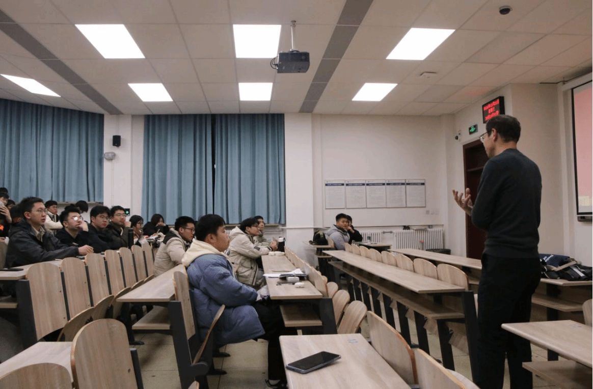 武文华老师面向装备数字化智能化需求,主要从事航天和海洋装备结构智能监测和数字孪生研究,从事基于大数据的装备故障诊断和状态评估技术,深度学习和AI结合的工程力学软件系统开发等研究。武老师以AI为背景并结合其课题组的相关研究展开讲述,让同学们深刻感受到了AI、神经网路、深度学习的相关魅力。