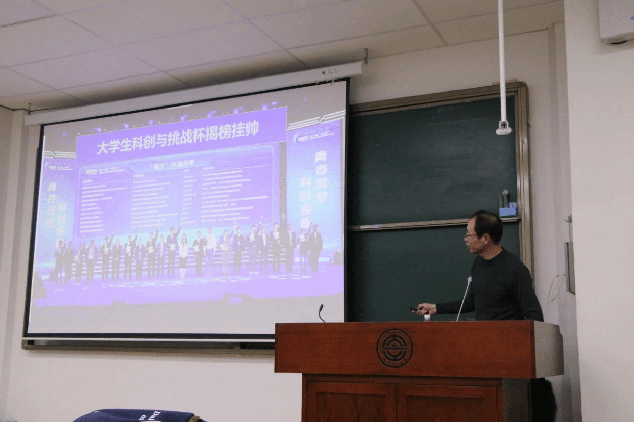 武老师根据自己在刚刚结束的“第十九届”挑战杯的比赛中总结经验,向大家讲述了科创与科研的关系。他提到科创就是科学创新(科代表科研,创新代表创造、新颖),科创是科研的延伸,并鼓励同学们要跨学科合作,大胆科创。希望同学们心怀爱国之心,树立远大理想,积极进取,刻苦学习,为祖国的强大做出每一个人应有的贡献!