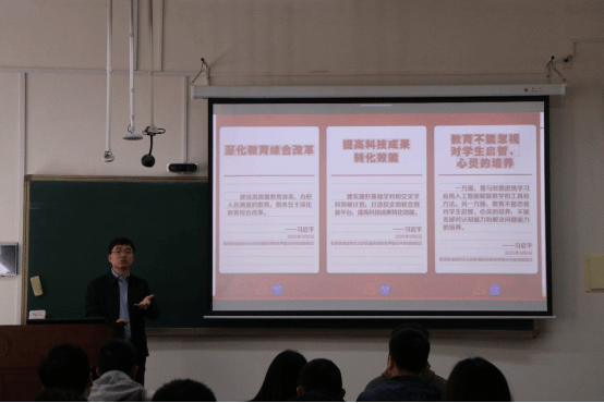 在科研创新成果方面,吕老师结合自身科研经历及课题主要讲述了飞行器非线性扩展多尺度有限元方法,多场耦合单元微分法,多场与多尺度分域自由单元一体化设计方法等三项创新成果,并在现场向同学们讲述了三种方法的优缺点及应用场景。最后,吕老师引用习近平总书记的经典话语,从教育工作者、科技工作者以及教书育人等多方面与同学们进行了讨论与交流。