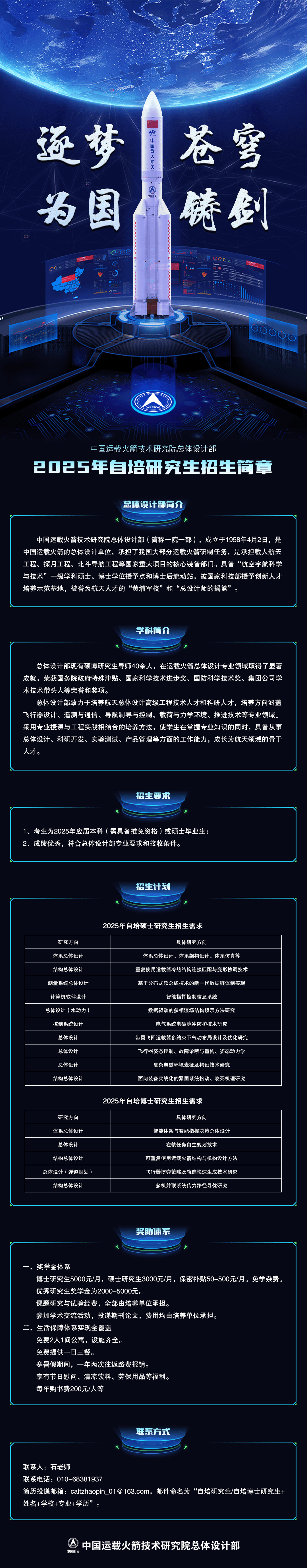 中国运载火箭技术研究院总体设计部2025年自培研究生招生简章