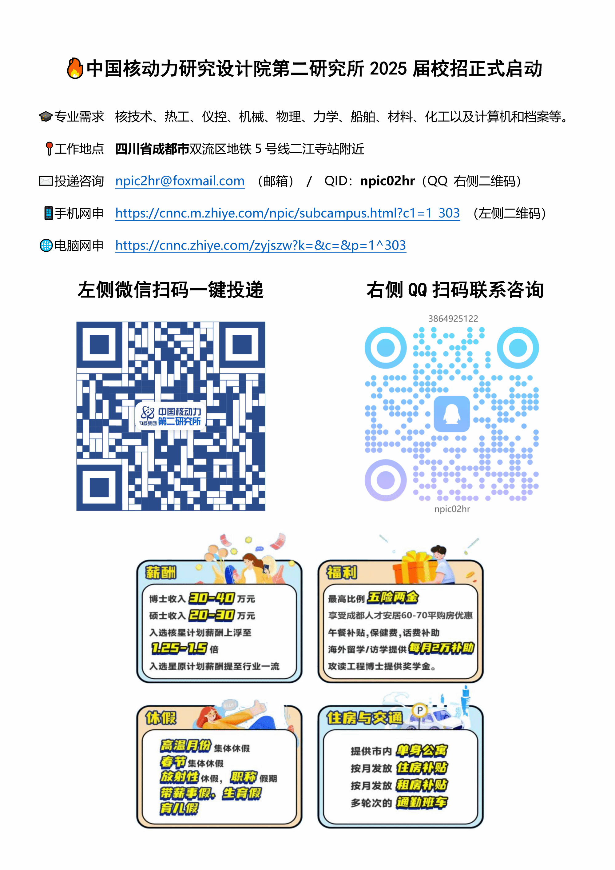 中国核动力研究设计院第二研究所2025届校招正式启动
