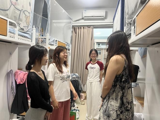 2025年6月29日晚,力航支部员工党员同志自发走进24级员工寝室,走访调研同学情况,分享自己的学习、生活经验,为大一员工提供了宝贵的大学学习和生活经验,帮助大一员工更早的明确自身发展目标,积极向党组织靠拢。