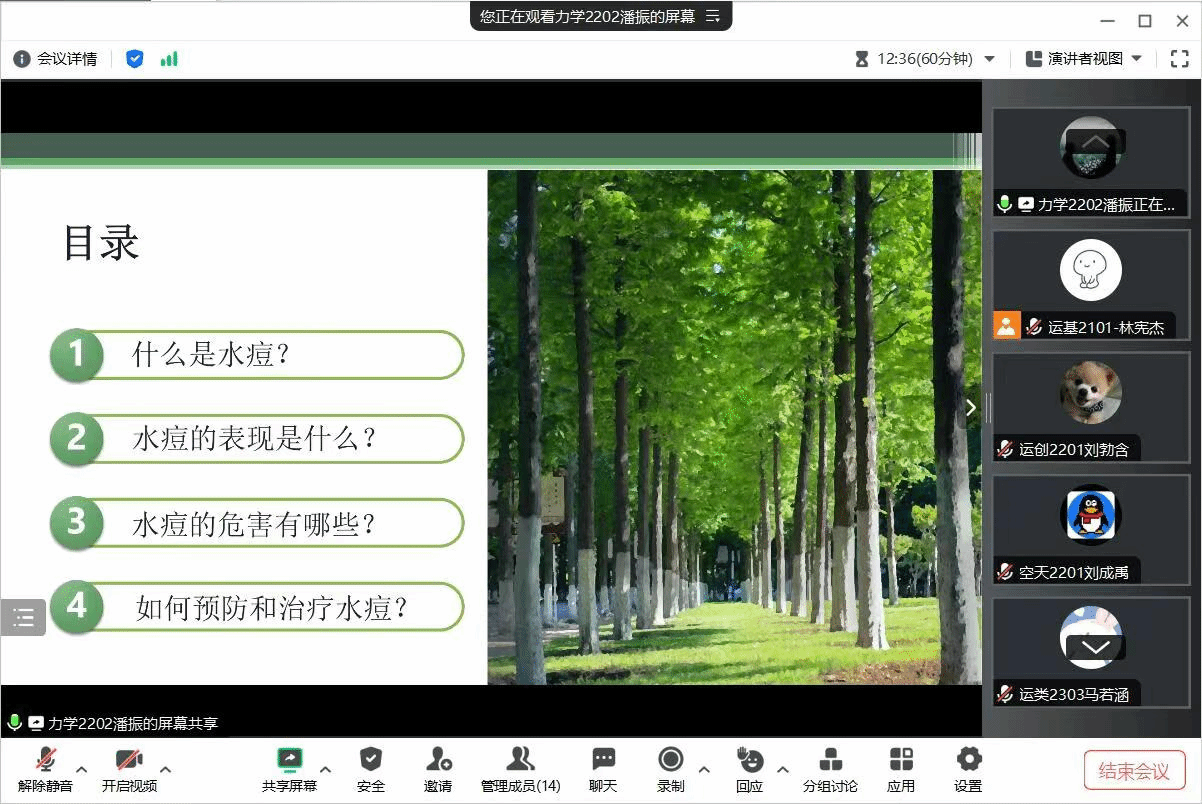 潘振同学重点讲述关于水痘的发病症状,危害以及防范措施。