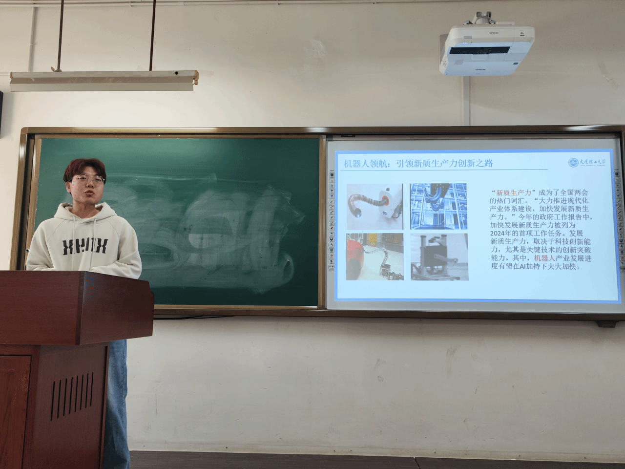 为深入贯彻落实2024年全国“两会”精神,引导同学们深刻领会、准确把握两会精神实质,切实增强青年学子的政治责任感和历史使命感,并就两会热词进行探究学习,伟德国际victor1946研究生团委宣传部于2024年3月26日开展了以“机器人领航:引领新质生产力创新之路”为主题的第四期“导师带我学理论”活动。