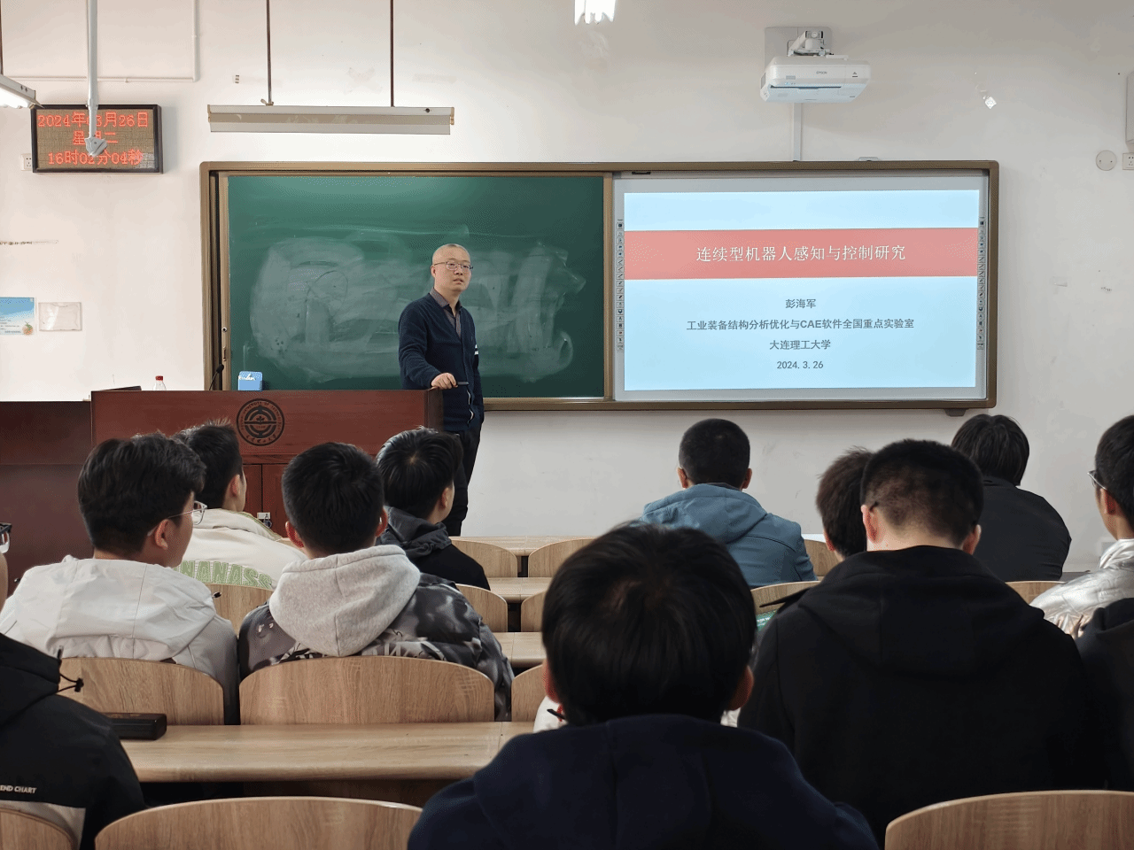 接着,彭海军教授为大家带来了主题为“连续型机器人感知与控制研究”的科普分享。在分享中,彭老师以背景为引,谈到“机器人是‘制造业皇冠顶端的明珠’其研发、制造、应用是衡量一个国家科技创新和高端制造业水平的重要标志”。继而讲到创新思路与科研实践,谈到“科研的目标是探索未知,解决问题,推动科学的发展。创新思路能够帮助科研人员突破传统思维模式,开辟新的研究方向,提出新的假设和理论,从而推动科学的进步”。最终,以创新成果展示收尾,为同学们带来了一场精彩绝伦的科研分享,也让同学们意识到发展新质生产力以及未来产业的重要性!