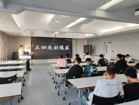 在五四运动回顾环节,主持人带领大家回顾了五四运动的历史背景及其在不同历史时期对青年的影响,活动详细介绍了五四运动的历史意义,包括积极传播马克思主义、唤醒中国劳苦大众、促进马克思主义与工人运动相结合,以及孕育了中国共产党的诞生等方面。这些内容让同学们深刻认识到五四运动对于中国历史发展的重要性。同学们通过观看视频《百年光影,五四精神》,进一步加深了对五四精神的理解和感悟,感受到了105年前爱国青年们的热血。